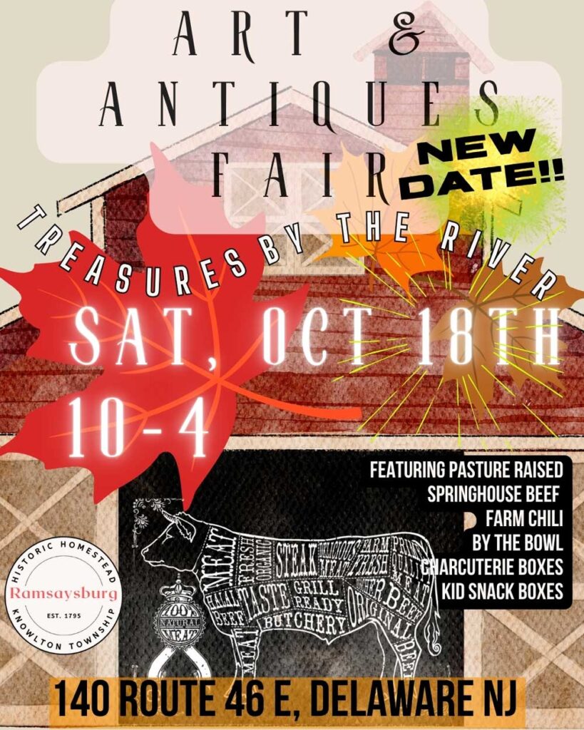 A market beautifully blending artisans and antique vendors. Indoor and outdoor settings in a large historic barn and in the pristine riverside amphitheater. Food provided by Springhouse Beef harvested from their 200 acre, 8th-generation farm in Stewartsville! Bring the kiddos for coloring with Stephanie, author of “Piggies’ Home Sweet Home”, a tale of four piggies who escape going to the market. Come join us for this free event: a day of picnicking, outdoor fun, river walks, and local artisan vendors.